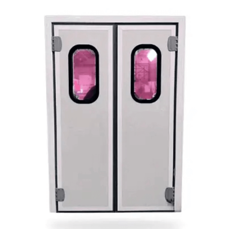 At Control Air Refrigeration, our refrigerated by-swing doors are carefully designed to deliver reliable separation in high-traffic workrooms and refrigerated warehouses, maintaining both efficiency and consistent temperature control. Built for versatility, they are available in singleor double-sheet configurations, offering easy access and maximum flexibility across a wide range of applications. Engineered to integrate seamlessly with sandwich panel installations, these cold room by-swing doors provide outstanding insulation, energy efficiency, and long-term durability—making them a trusted choice for the food service, hospitality, and cold storage industries. With performance and practicality at the forefront, our customizable by-swing doors help preserve the integrity of temperature-sensitive products while improving workflow in busy environments. They also feature high calorific resistance, withstanding temperatures as low as -4ºF.